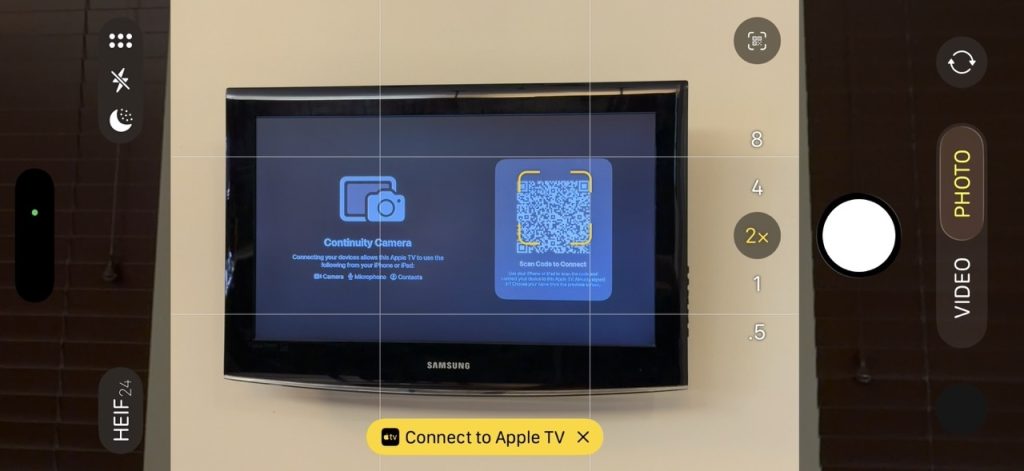 If your phone isn’t on the same iCloud account as the Apple TV, you are guided to scan a QR code to connect. Frankly, I was never able to get that scenario to work.