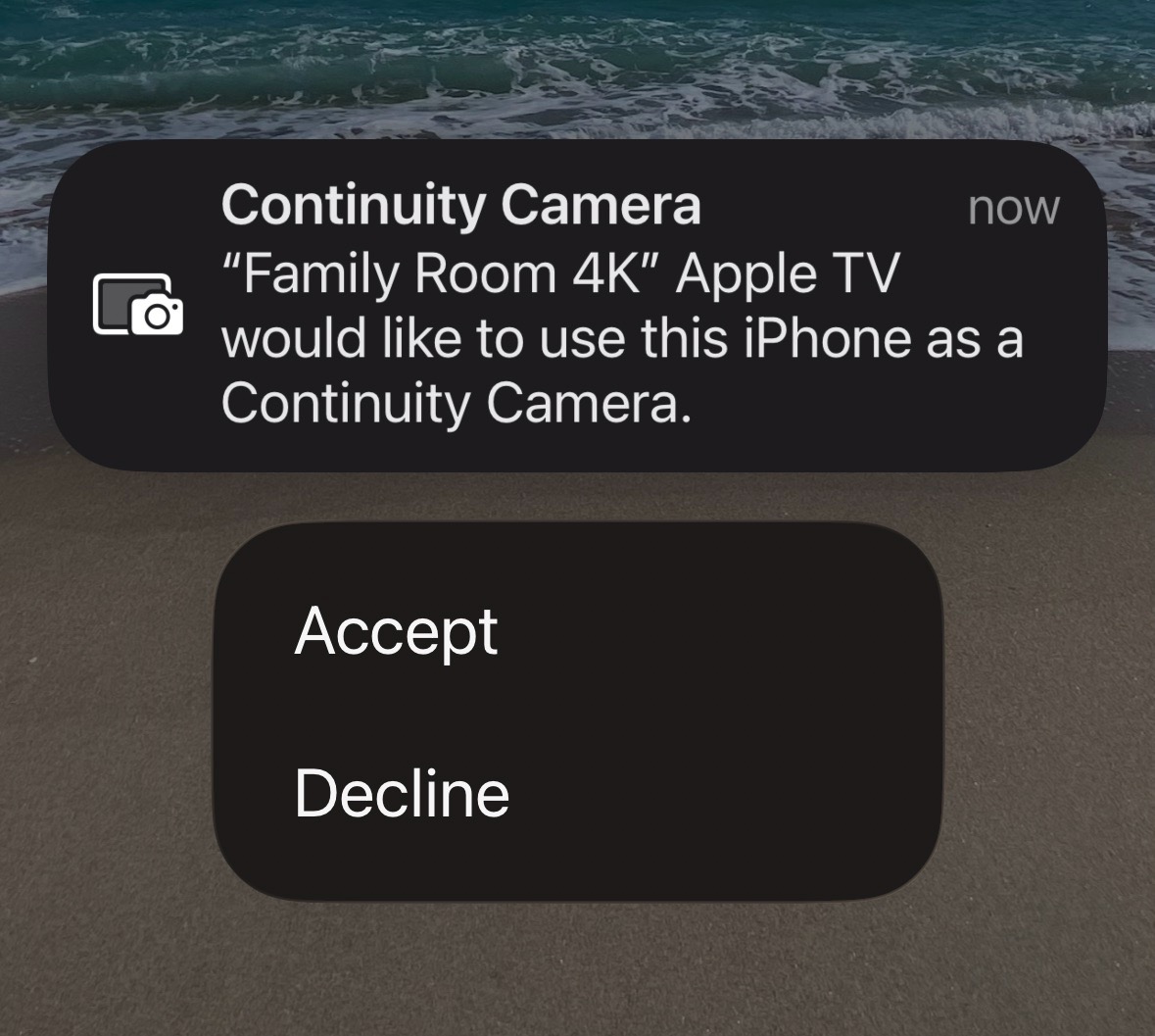 Apple has addressed that problem with a feature called Continuity Camera, in which your iPhone’s camera and microphone can be used to extend the capability of your Apple TV.